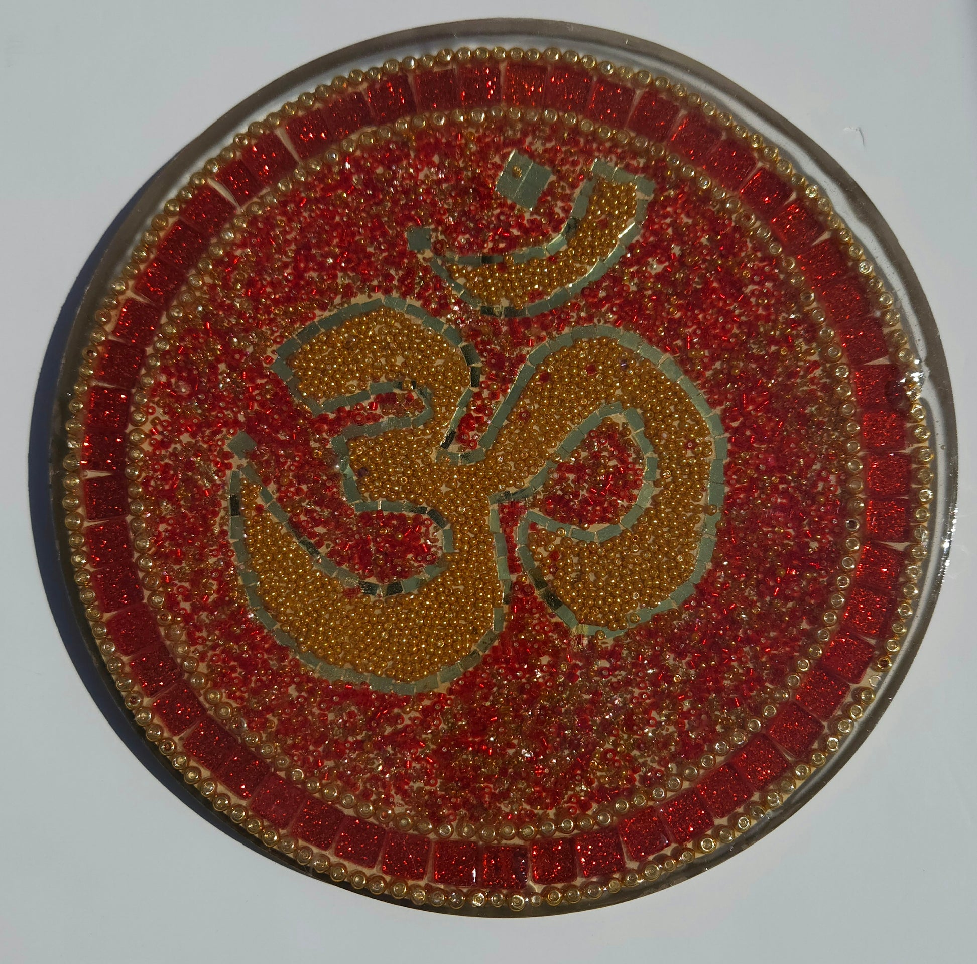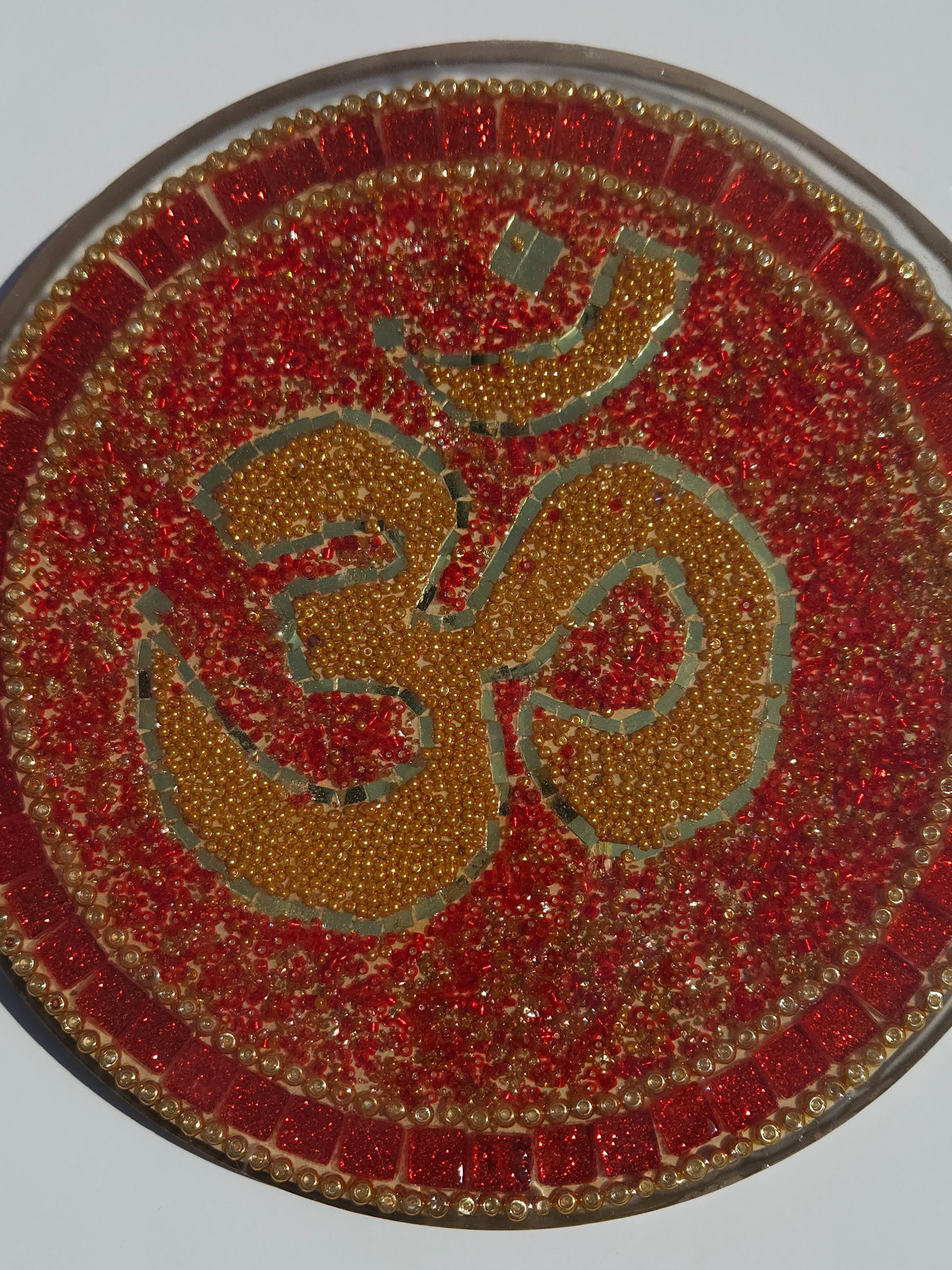 Handcrafted Om 🕉️ Mosaic Wall Art – Resin, Beads & Glass Tile Red Glitter