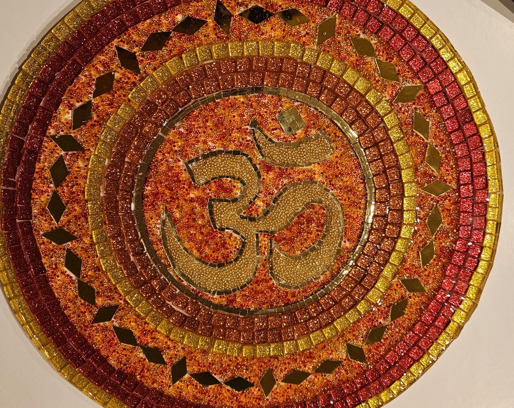 Elevate your space with the timeless power of the Om symbol, beautifully handcrafted in this vibrant mosaic mandala wall art. Designed with fiery tones of gold, red, orange, and copper, this piece radiates warmth, energy, and divine presence.