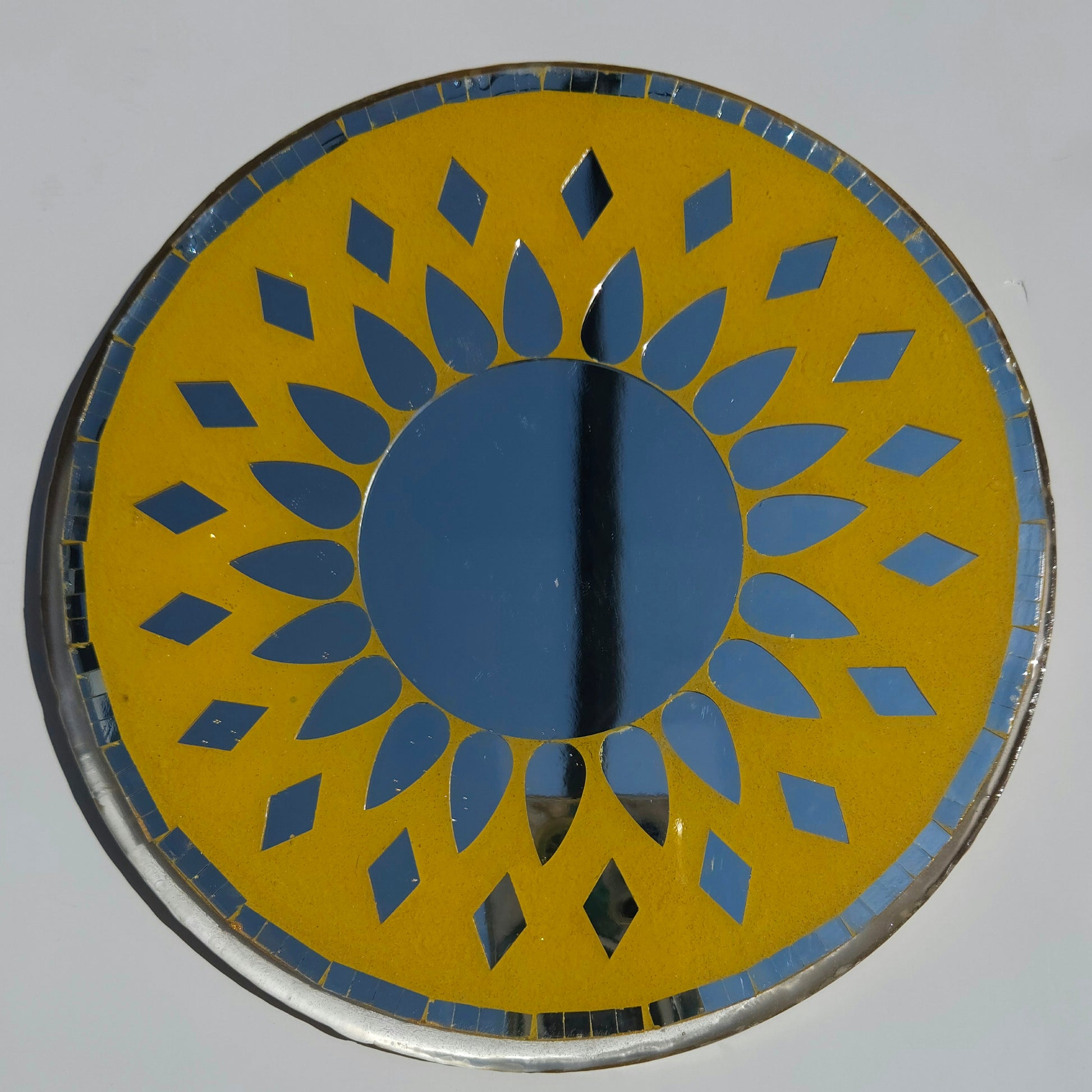 Round Yellow Mosaic Mirror – Handcrafted Wall or Table Decor with Geometric Design (Copy) (Copy) (Copy)